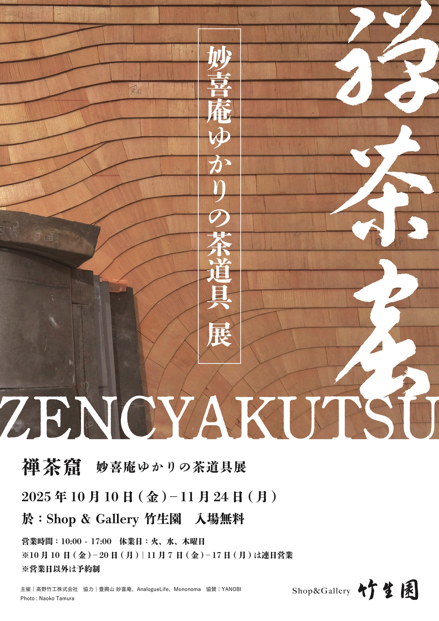 本展では、利休ゆかりの地の素材に新たな命を吹き込んだ茶道具を紹介し、職人たちの想いとともにお伝えします。
