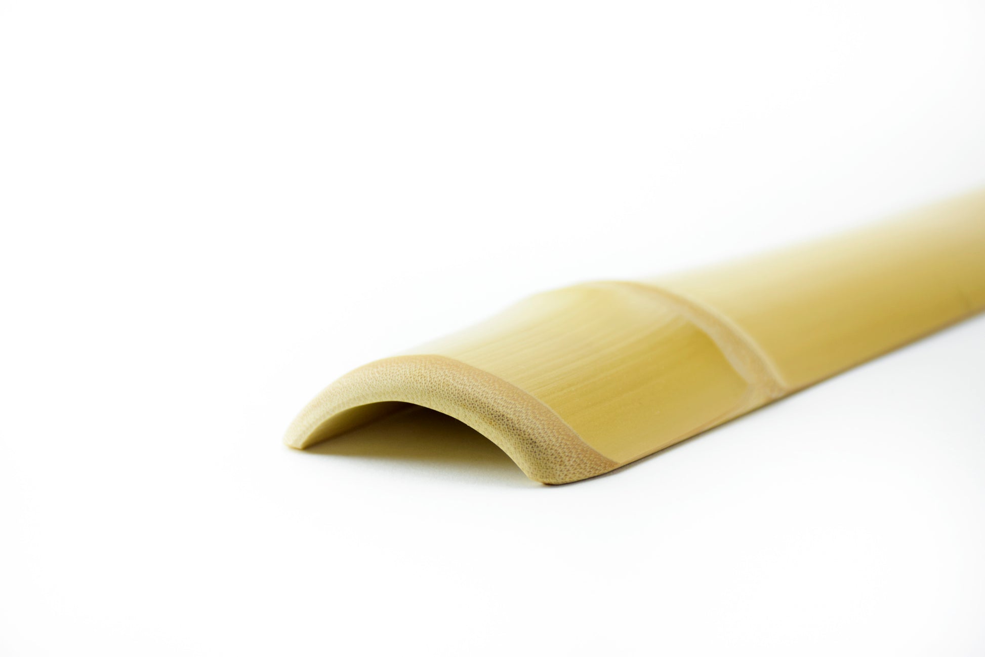 筒状の竹をおよそ三分の一に割り、節や角の突起を丁寧に削り上げて仕上げました。