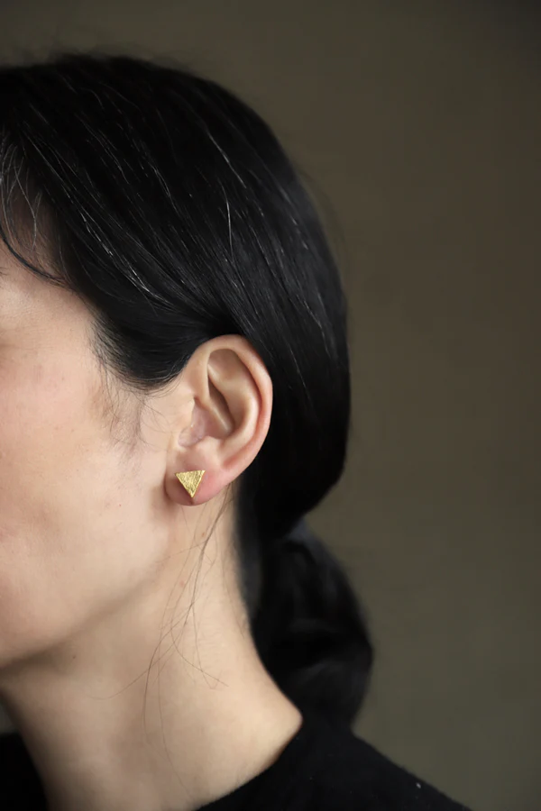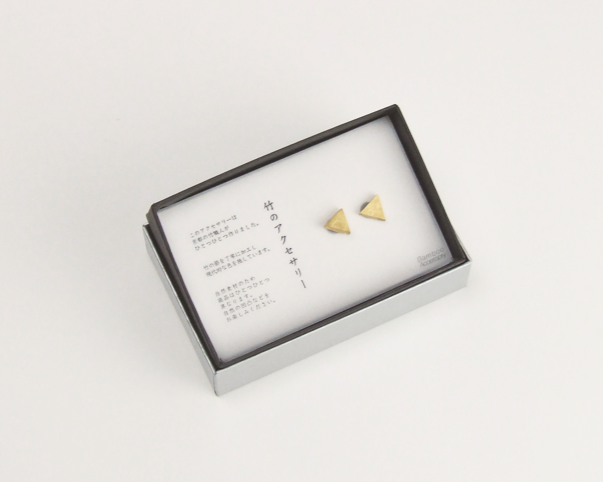 竹の節を刳り貫き金箔・銀箔で全体を覆った、小ぶりなピアスです。