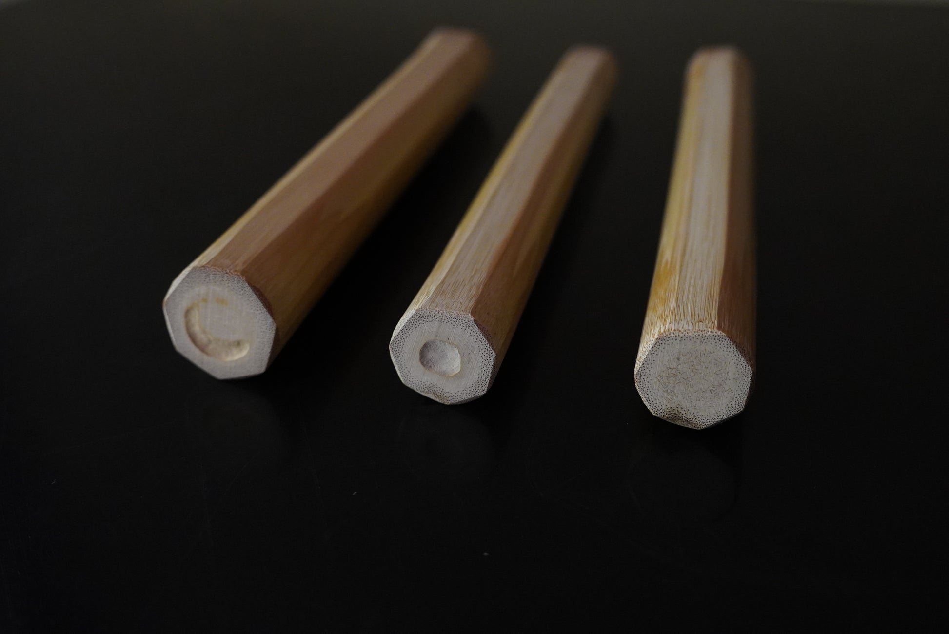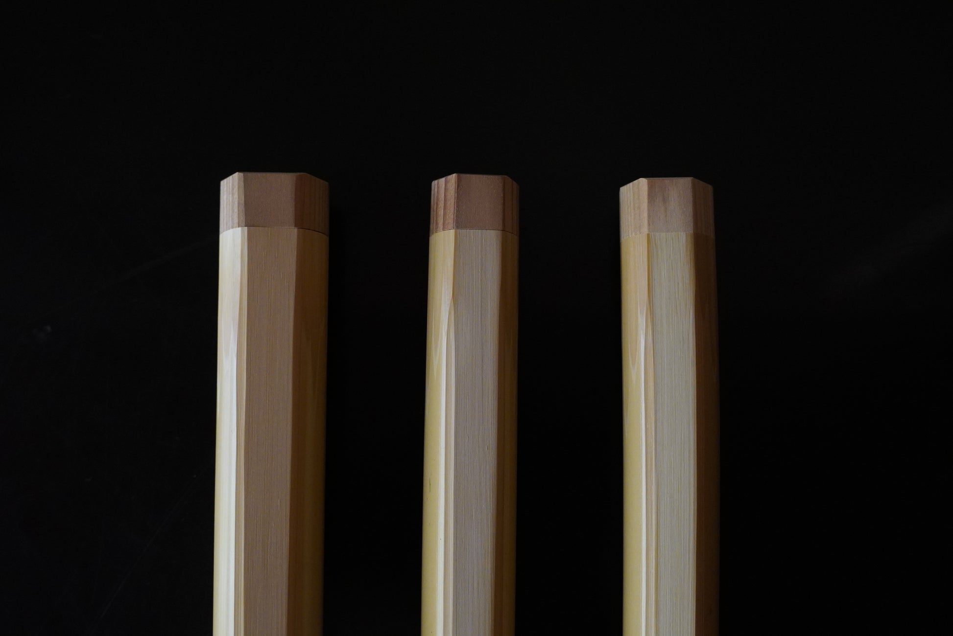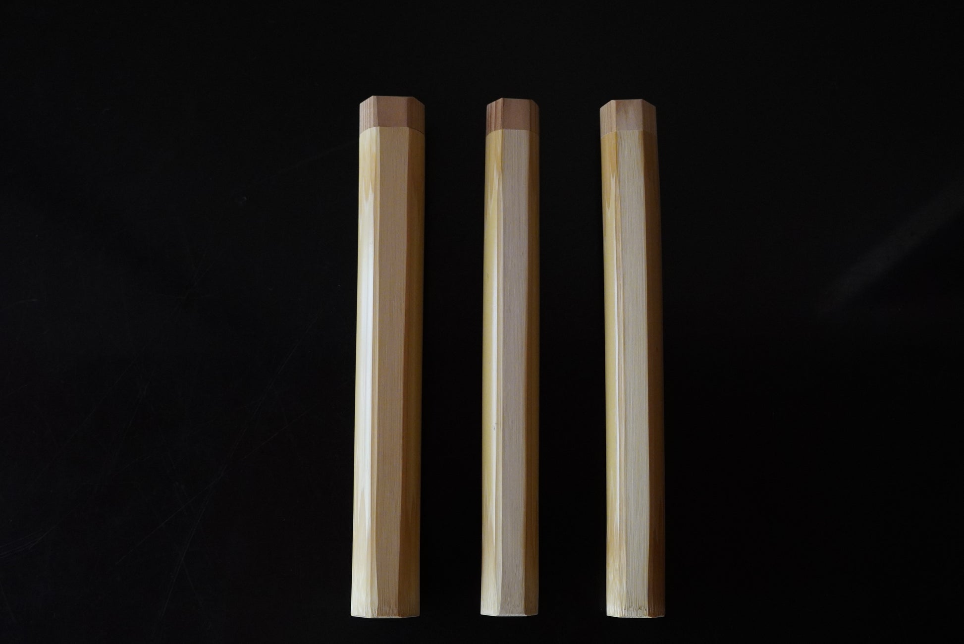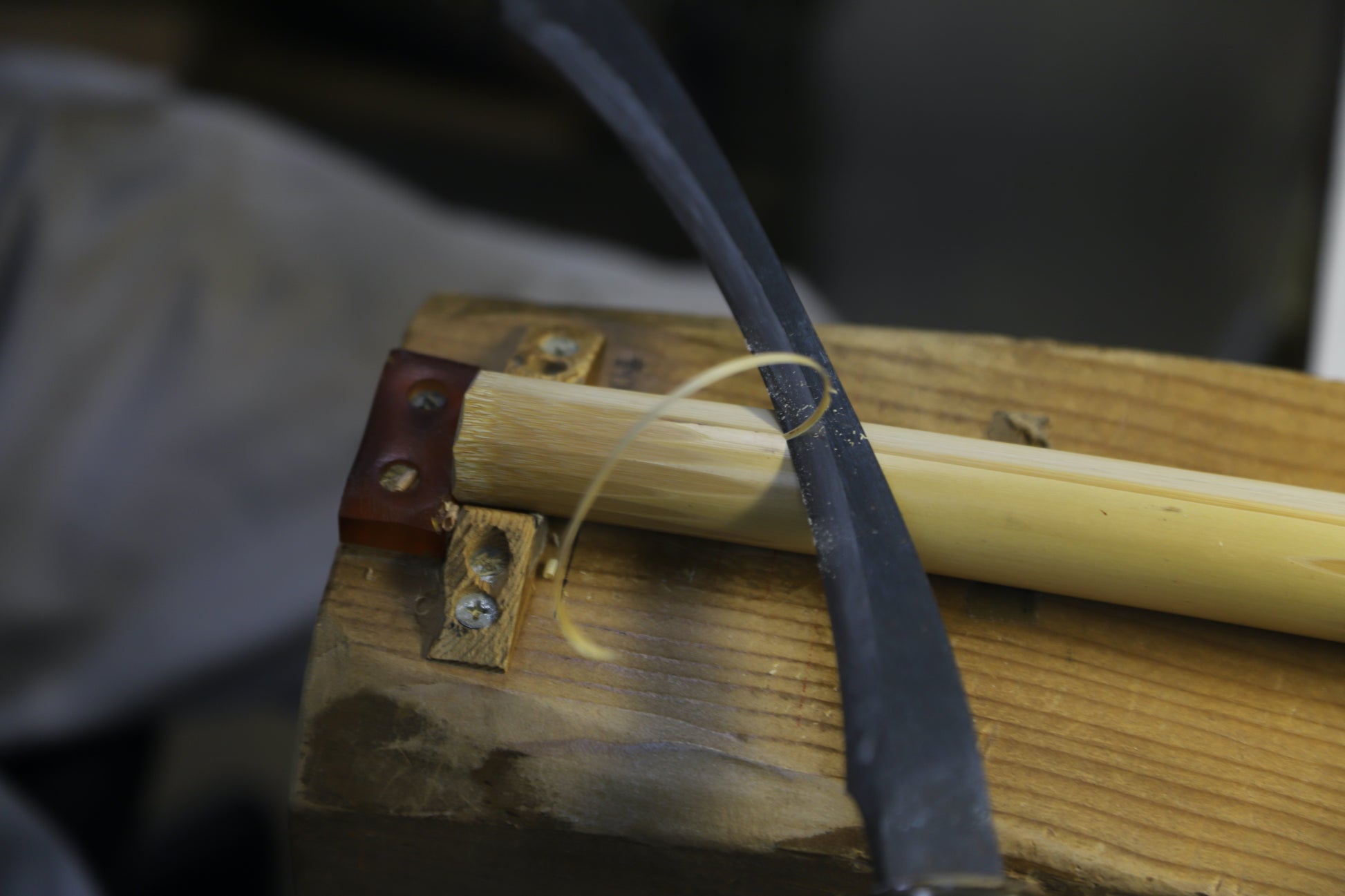 素材には、製材後に長年乾燥させた九分(くぶ)の白竹を厳選。上下は「銑(せん)」という専用の道具を用いて、丁寧に削り出しています。