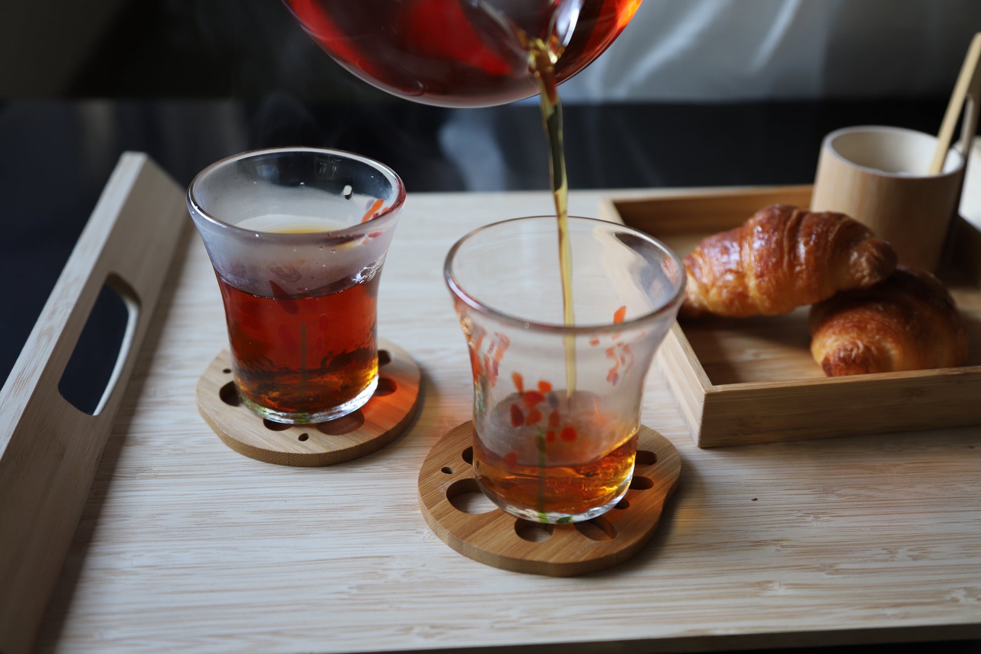 穴あき構造なので、冷たいグラスが結露しても底にくっつきません。