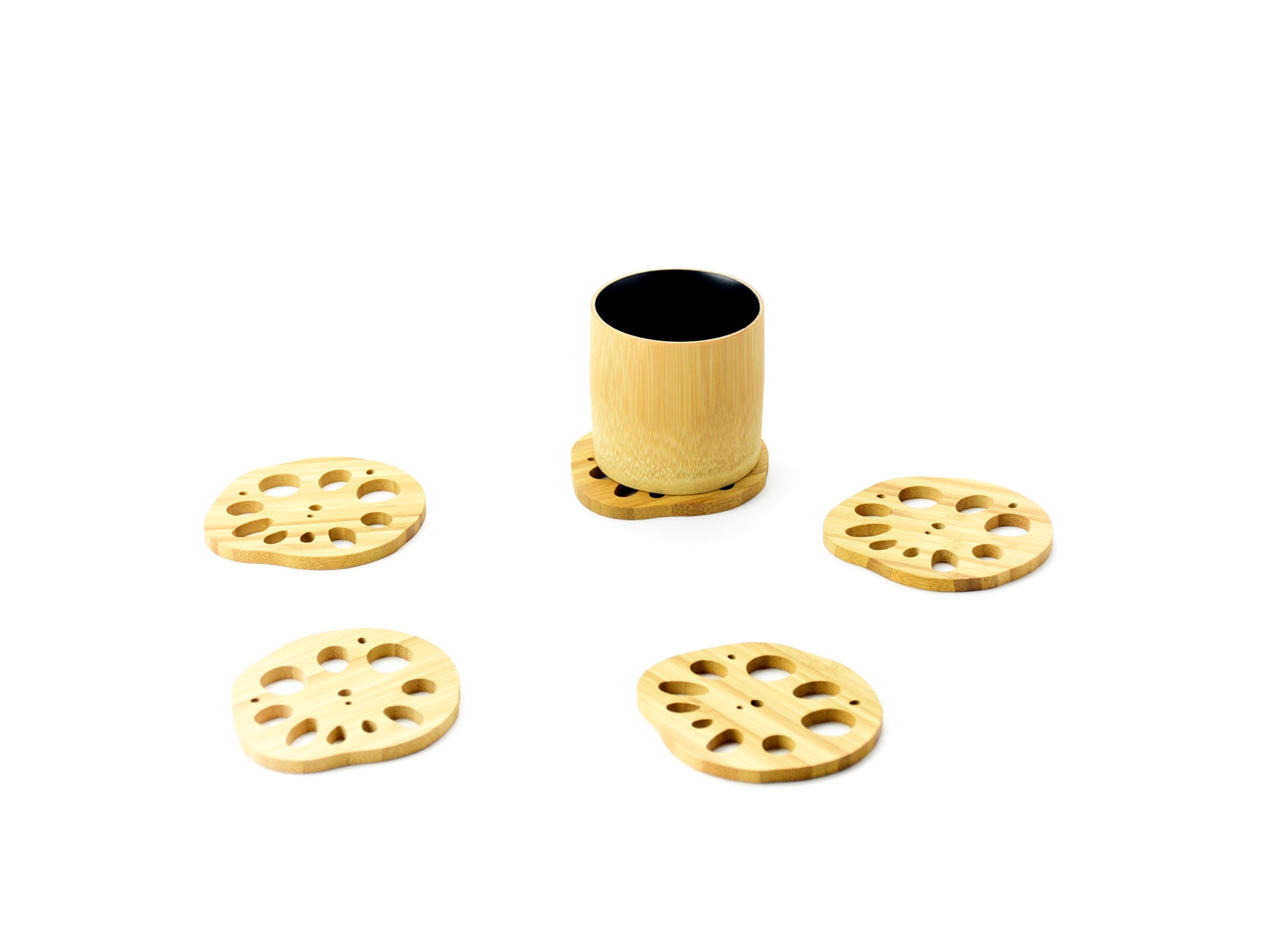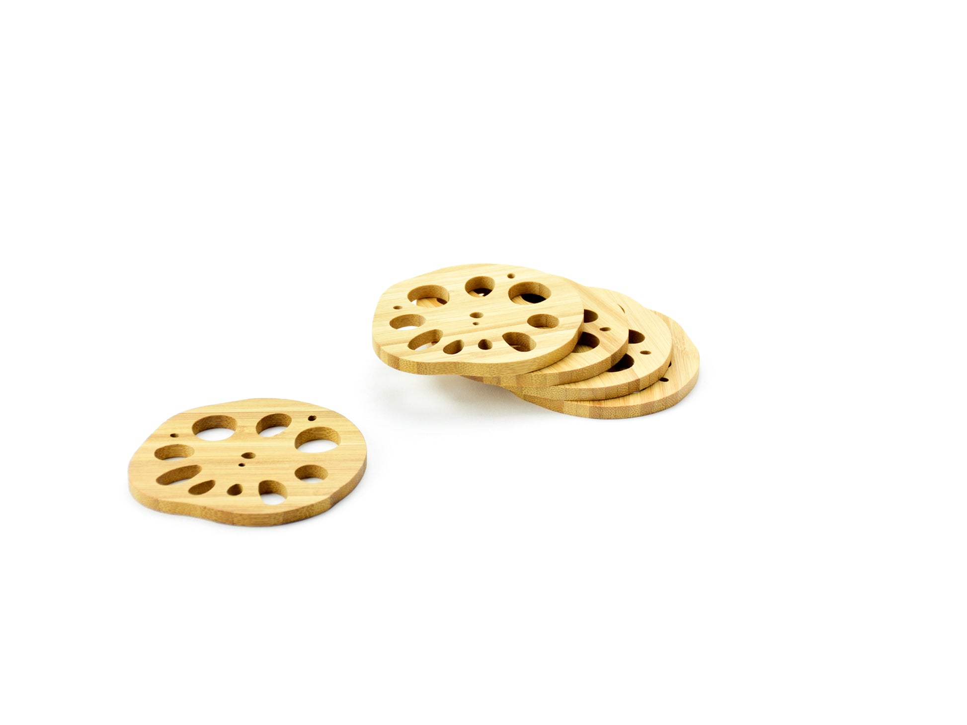 開いた穴から先が見通せると伝えられる縁起物、レンコンをモチーフにしたコースターです。
