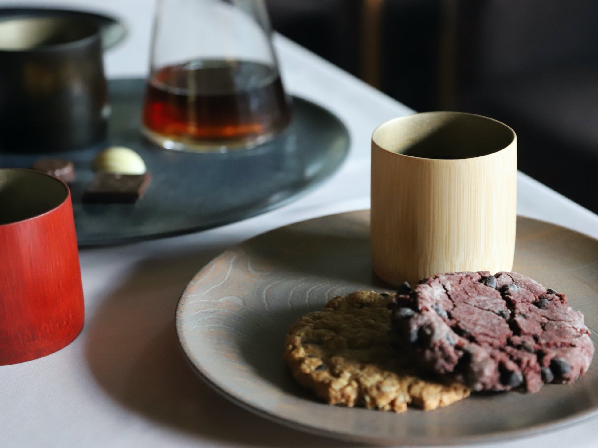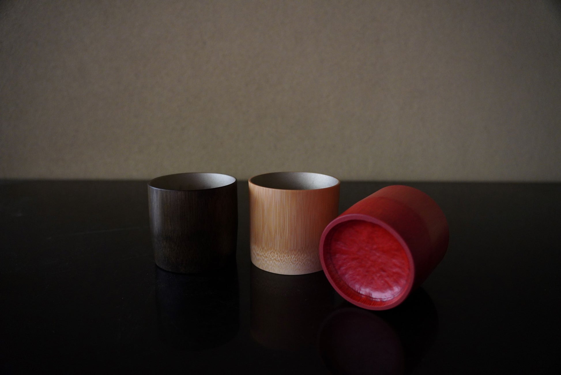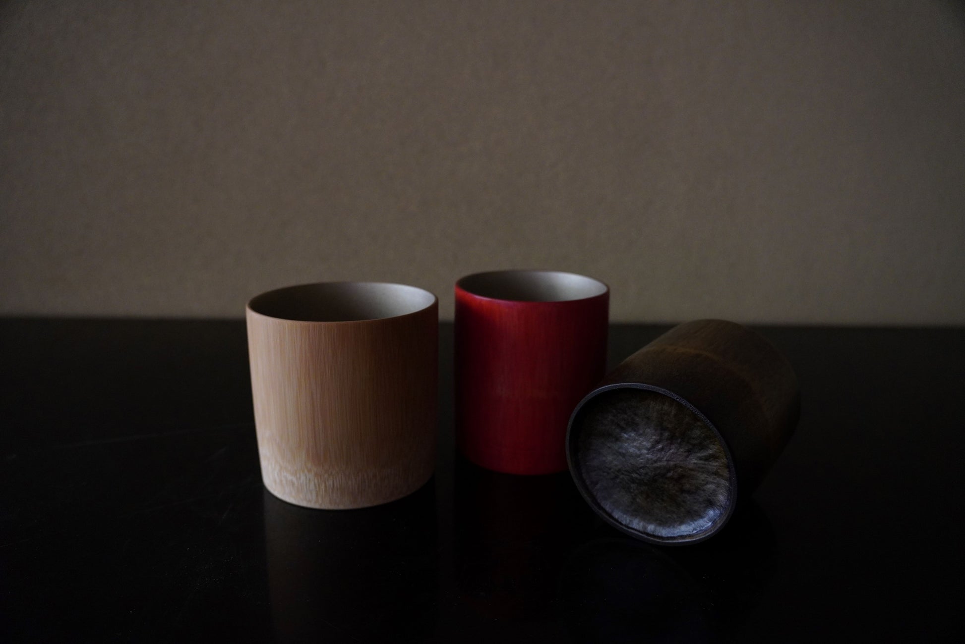 良質の真竹の皮を削り、木目を生かして丹念に仕上げた摺り漆の艶やかさと錫蒔地の繊細な煌めきが華やかな格調高い竹のカップです。