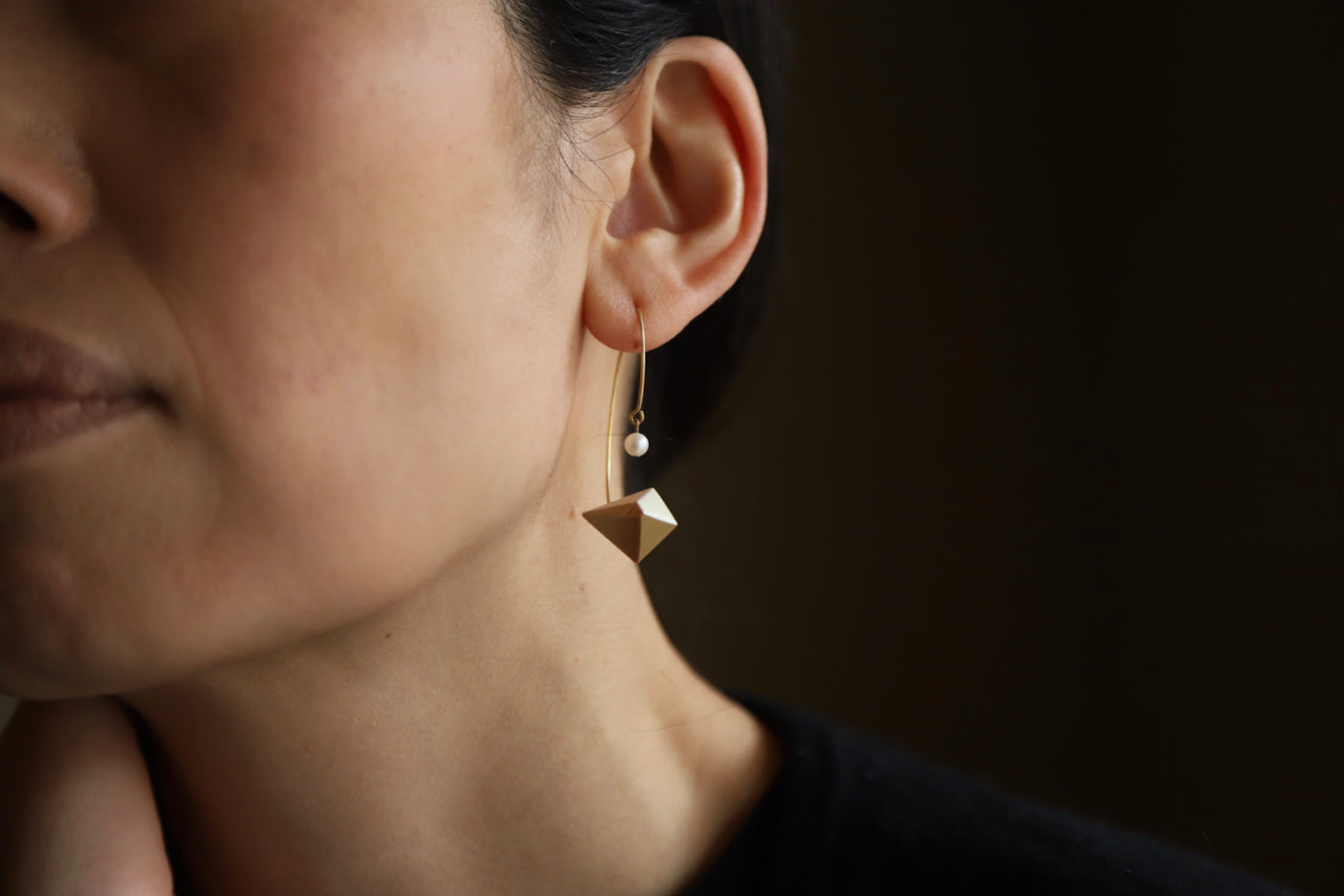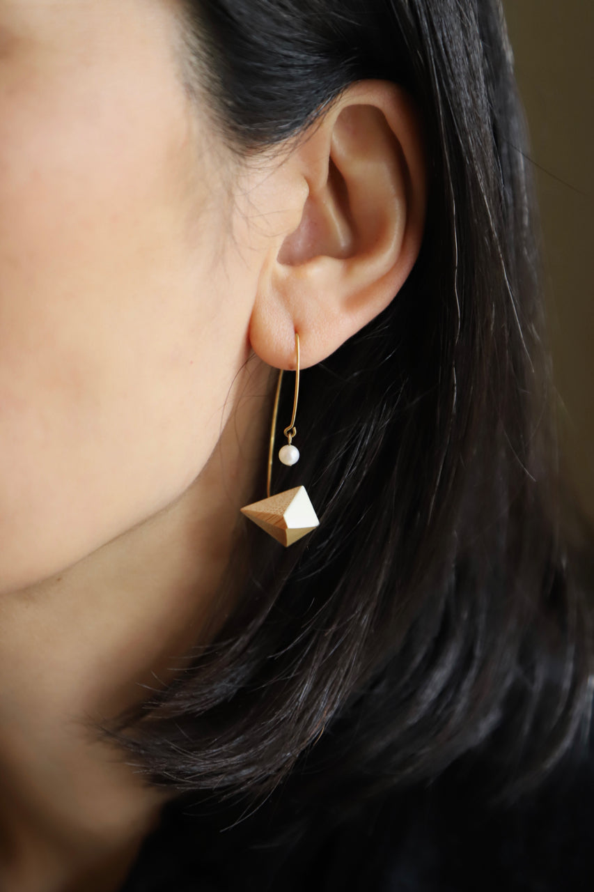 多角形にカットした竹をパールと組み合わせたエレガントなピアスです。