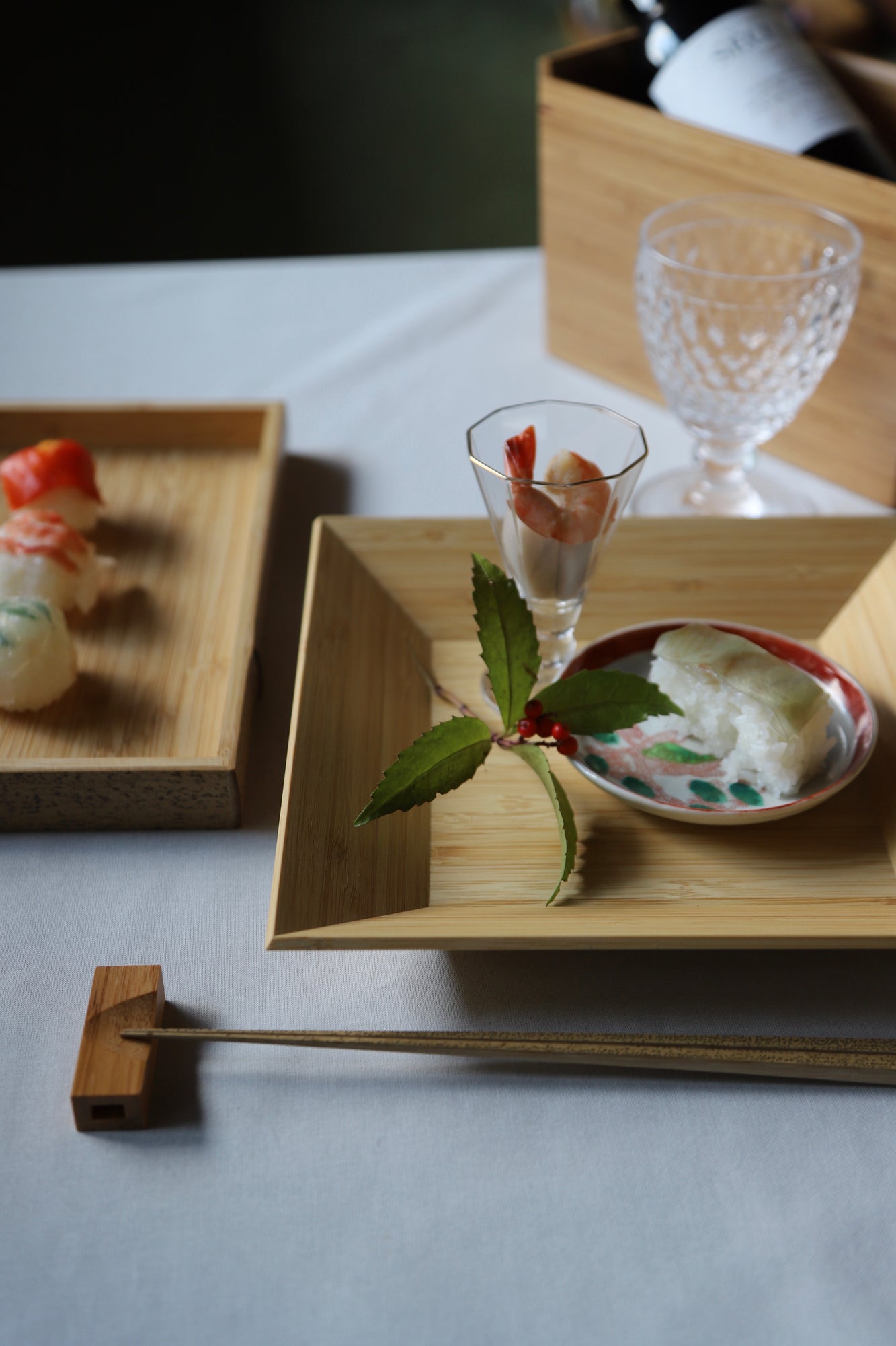 配膳時には側面の穴にお箸を通してすっきりと、お食事中はくぼみがあるのでお箸が滑り落ちず安心です。