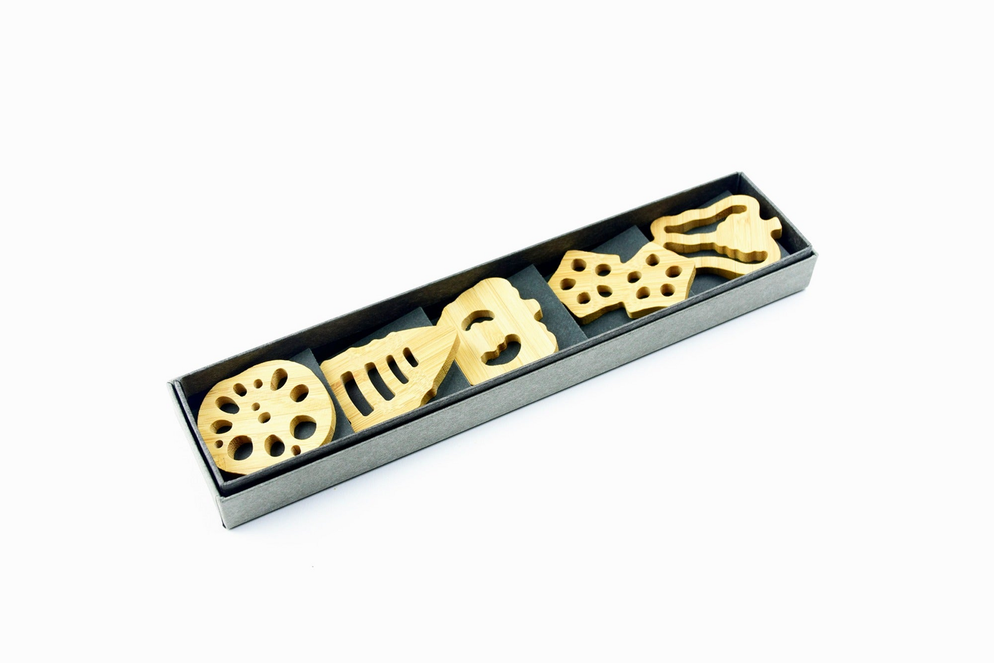 野菜の断面をモチーフにした箸置きです。招福と厄よけの祈りをこめました。