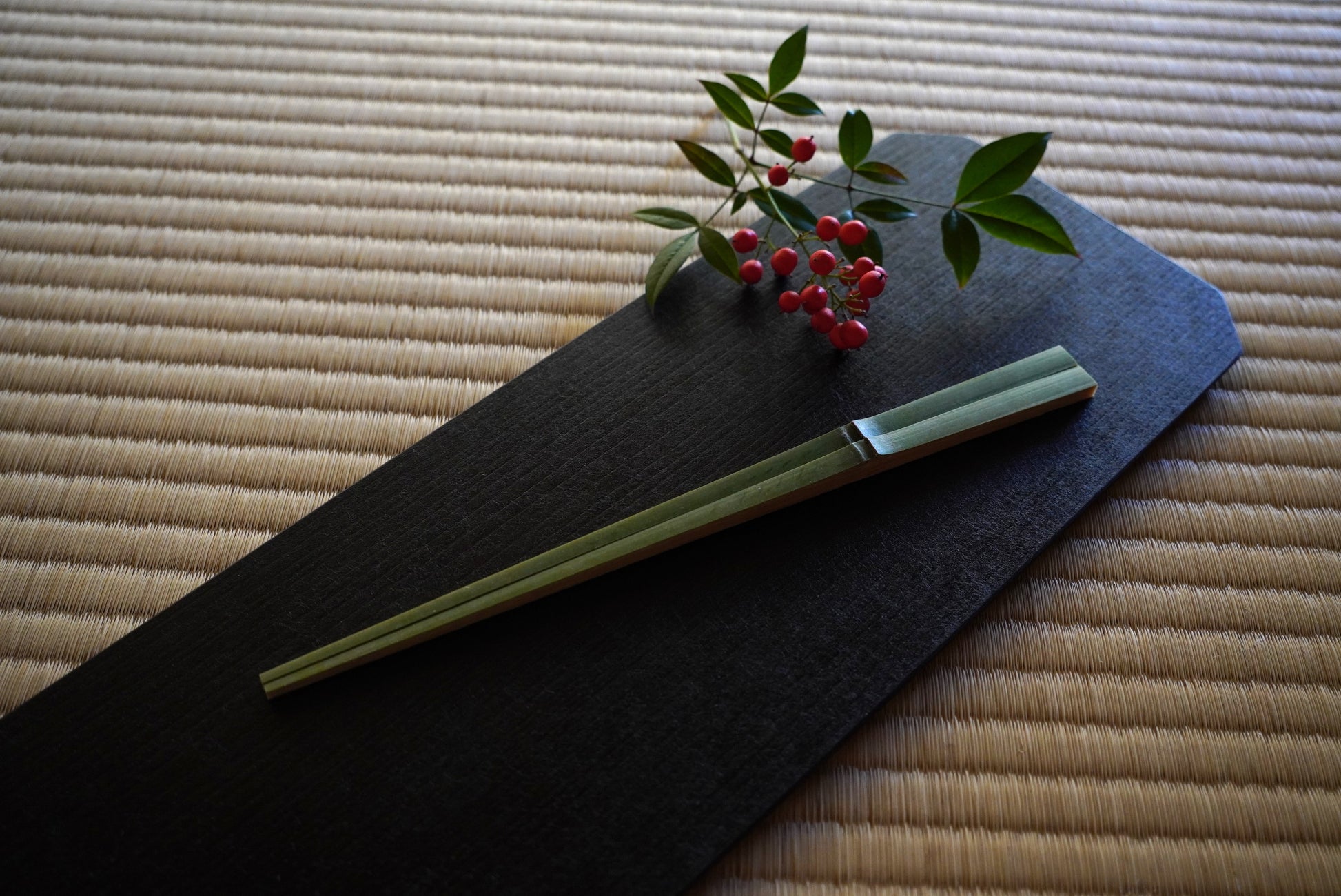 一閑張りは、千家十職の飛来一閑が編み出した漆の手法で、土台となる記事や竹籠などに上質の和紙を貼り重ね、その上から漆を塗ることによって強度を高め、独特の風合いを出した紙漆細工です。