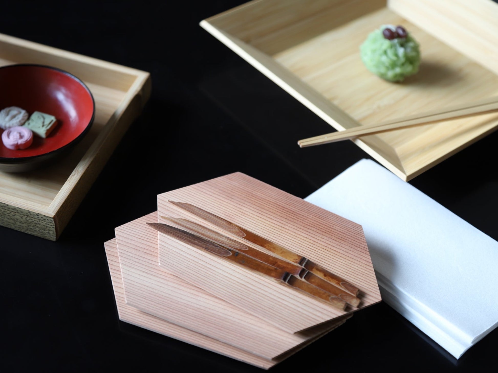 杉の木目の美しさが御菓子の美味しさを際立たせ、日常使いからお客様へのおもてなしにもご利用いただけます。