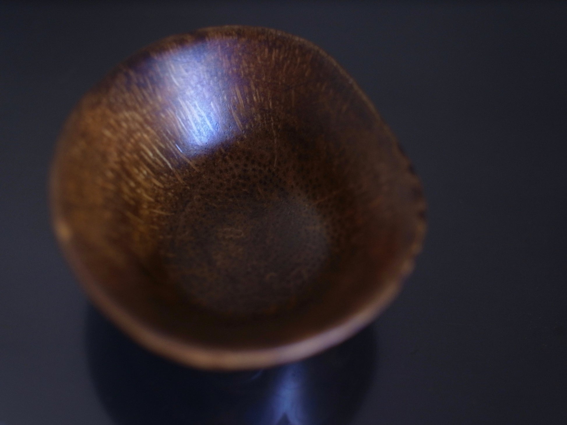 職人が大切に育て長い年月かけて寝かせた良質の竹を厳選し、一本から一つしか取ることができない貴重な根元の材料を丁寧に削り上げ、漆を施して盃に仕立てました。